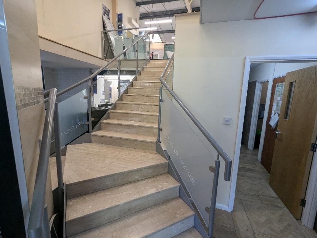 An end-of-terrace industrial/warehouse building currently utilised as a tile showroom. The property is of steel portal frame construction with brick and block elevations beneath a pitched profile steel roof. The front elevation provides a useful glazed frontage. Unit 4 is attached to the rear of Unit 1, providing additional storage space and roller door loading access.