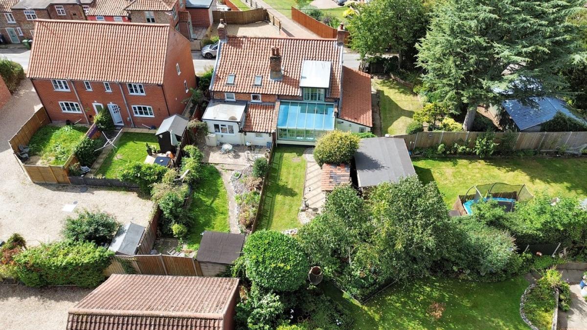 GARDENS The property has a shingled driveway leading to the garage and providing additional off-road parking. Pathways then lead to the beautifully landscaped and well established gardens with two lawned areas, well-stocked, raised flower and shrub beds and paved patio area.