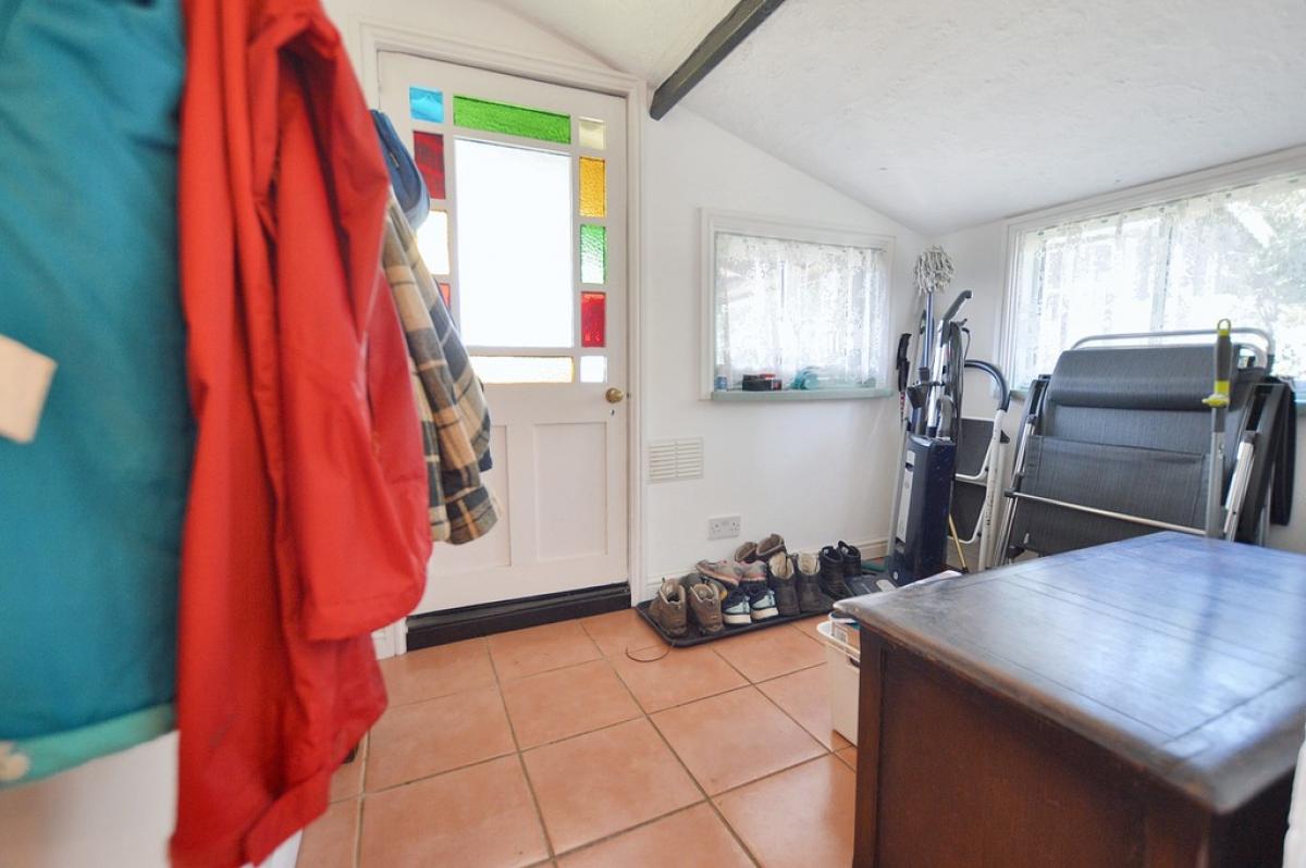 ENTRANCELOBBY Windows to front and side. Tiled floor, coats hanging space, part glazed door to: