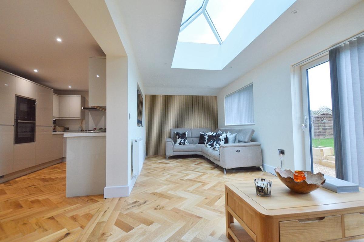 LOUNGEAREA Further continuation of polished wood block flooring, window and large patio doors to rear garden, two radiators, provision for wall mounted TV, feature panelled wall.