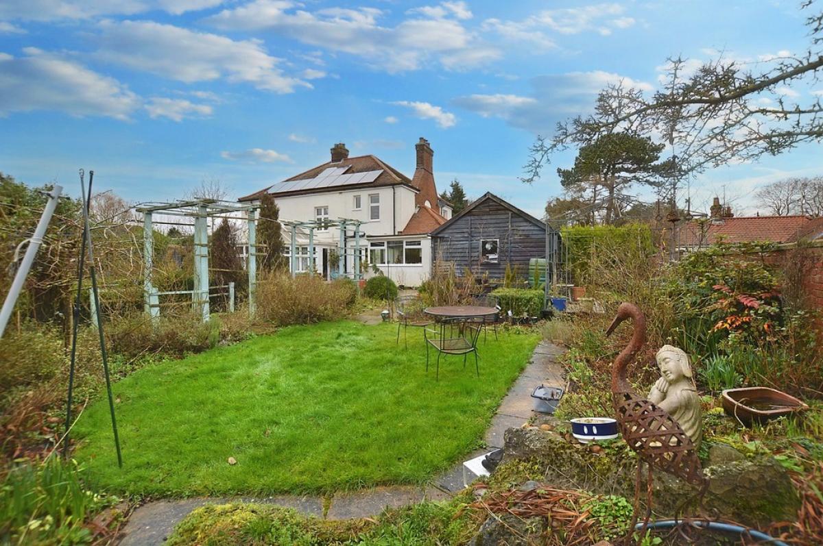 OUTSIDE The property stands in a plot approaching 2/3 acre subject to survey. A driveway leads from the road and provides off-road parking for a number of vehicles and leads to the original 1920s timber GARAGE. To the front of the property is an established garden area with central pathway leading to a number of shrub and flower beds. A side access then leads to the extensive rear garden which has been carefully designed and maintained to attract birds and wildlife. There is a patio immediately at the rear and a series of pathways then meandering through the garden where there are various lawned areas, box hedging, numerous shrubs and trees and pergolas making it a delightful space which may only be appreciated by a viewing. There are a number of outbuildings within the grounds which back on to open farmland at the rear.