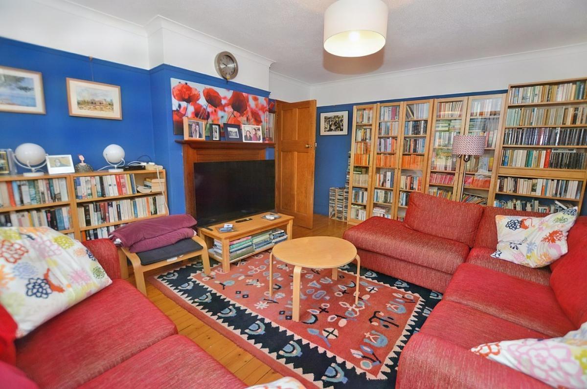 LIVINGROOM A light room enjoying two aspects to the front and side. Polished wood floor, radiator, timber fire surround with open fire if required.