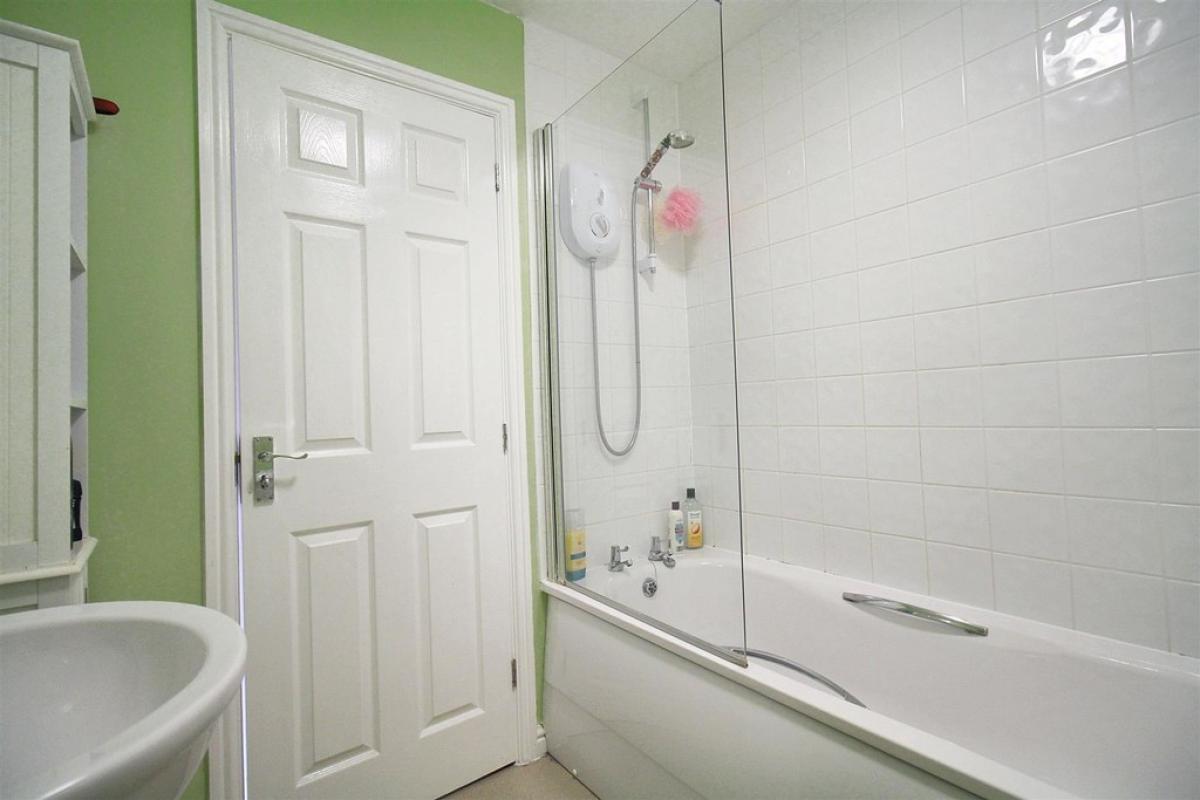BATHROOM Fitted with a three piece suits comprising bath with electric Mira shower over, WC, pedestal wash hand basin, vinyl flooring, extractor fan, shaver charging point.