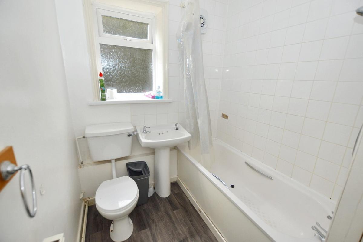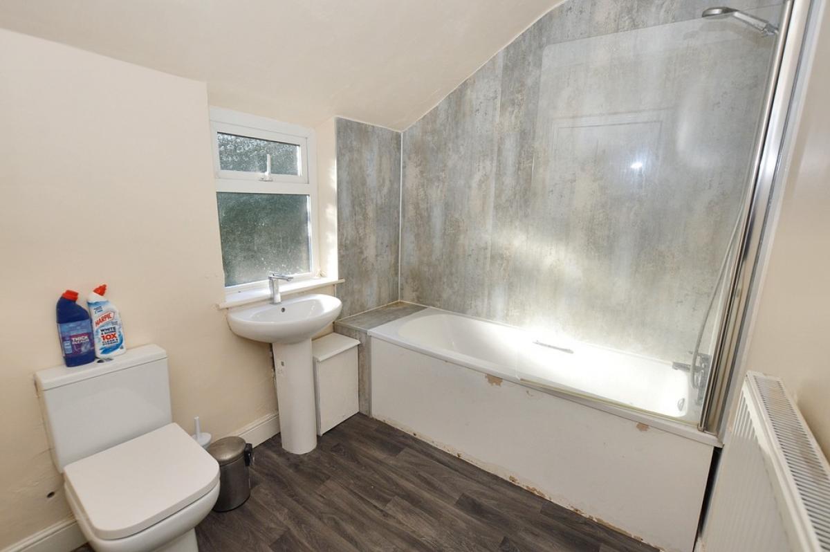 BATHROOM Panelled bath with mixer shower above, pedestal wash basin, close coupled w.c. radiator, window to side aspect.
