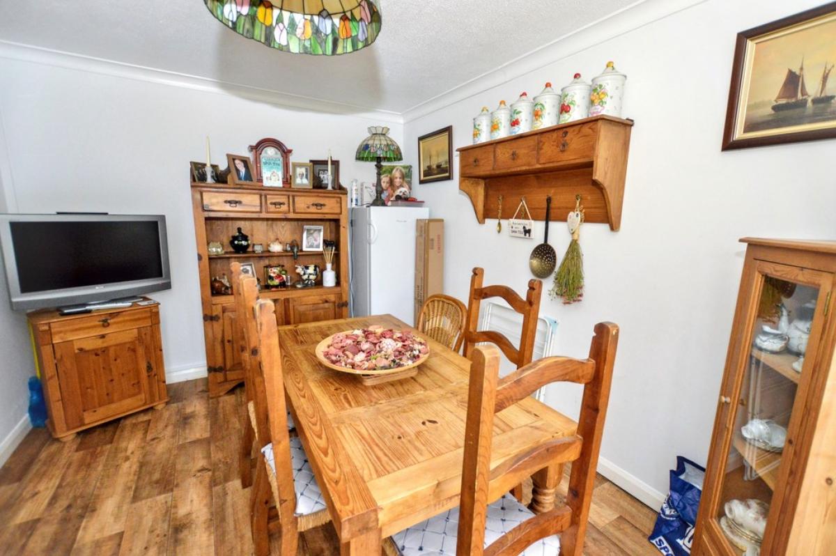 LOUNGE/DININGROOM A beautifully light room with three aspects to the front and sides, tiled fireplace with wood burning stove, radiator, provision for TV.
