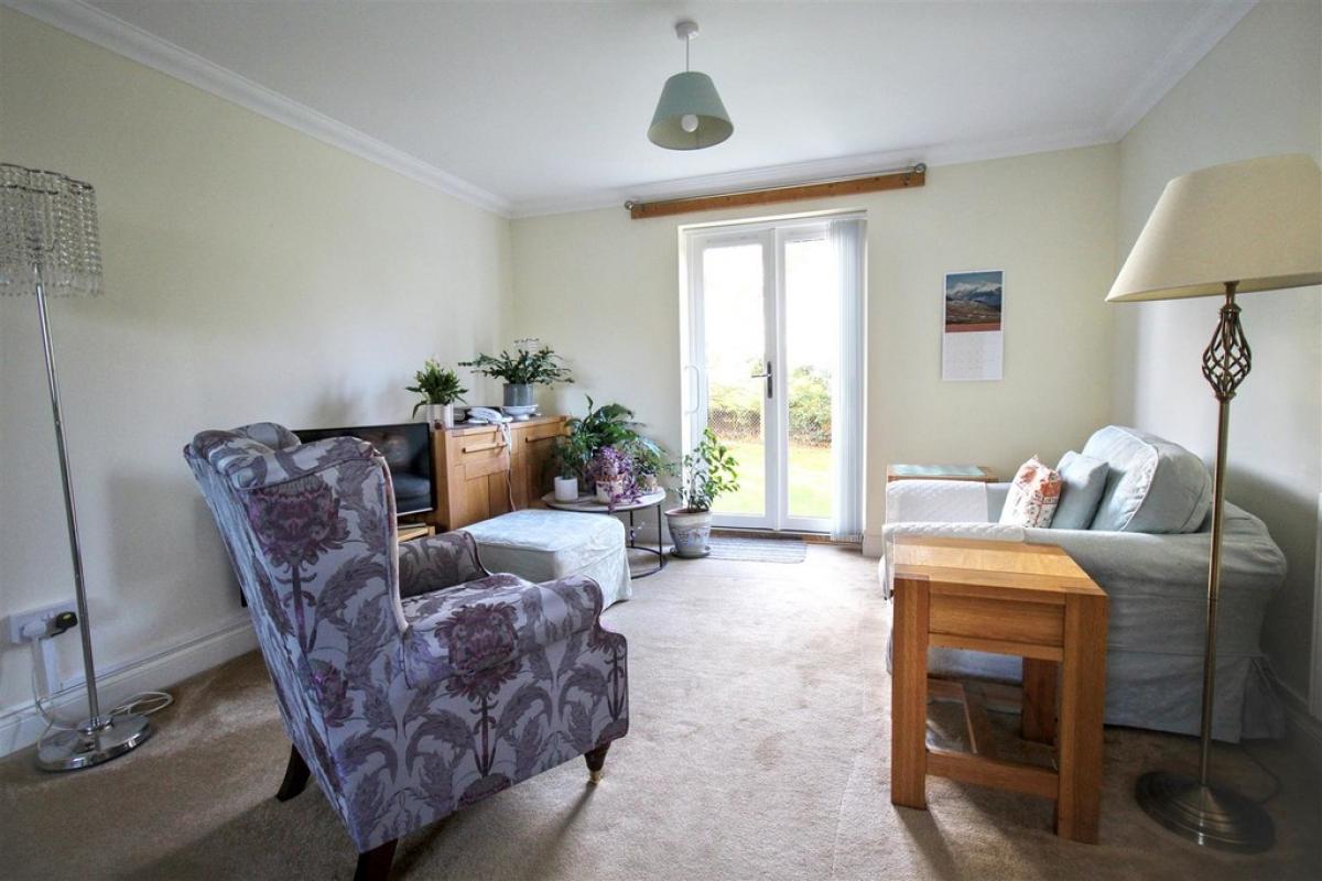 Living Area: Double glazed French doors to the rear garden, carpet, electric heater.
