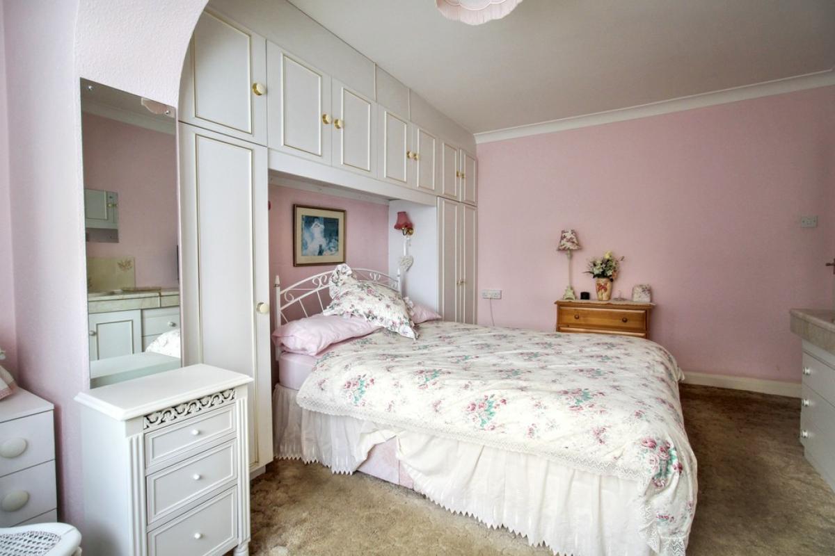 BEDROOM ONE Double glazed window to rear aspect, carpet, radiator, fitted wardrobe and drawer units with inset wash hand basin, TV aerial point, door to cloakroom:-