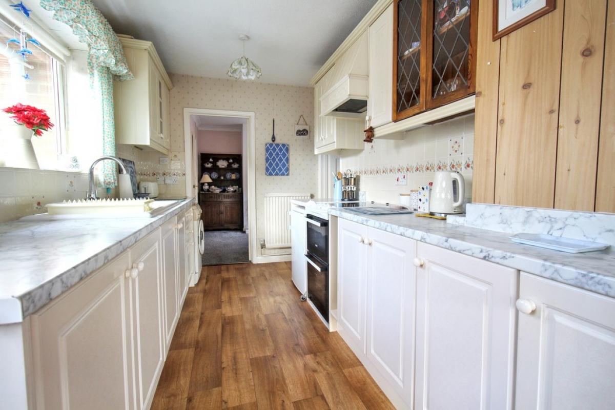 KITCHEN Double glazed window to side aspect, wall and base units, inset ceramic one and a half sink and drainer, electric oven with cooker hood over, space and plumbing for washing machine, radiator, door to conservatory.