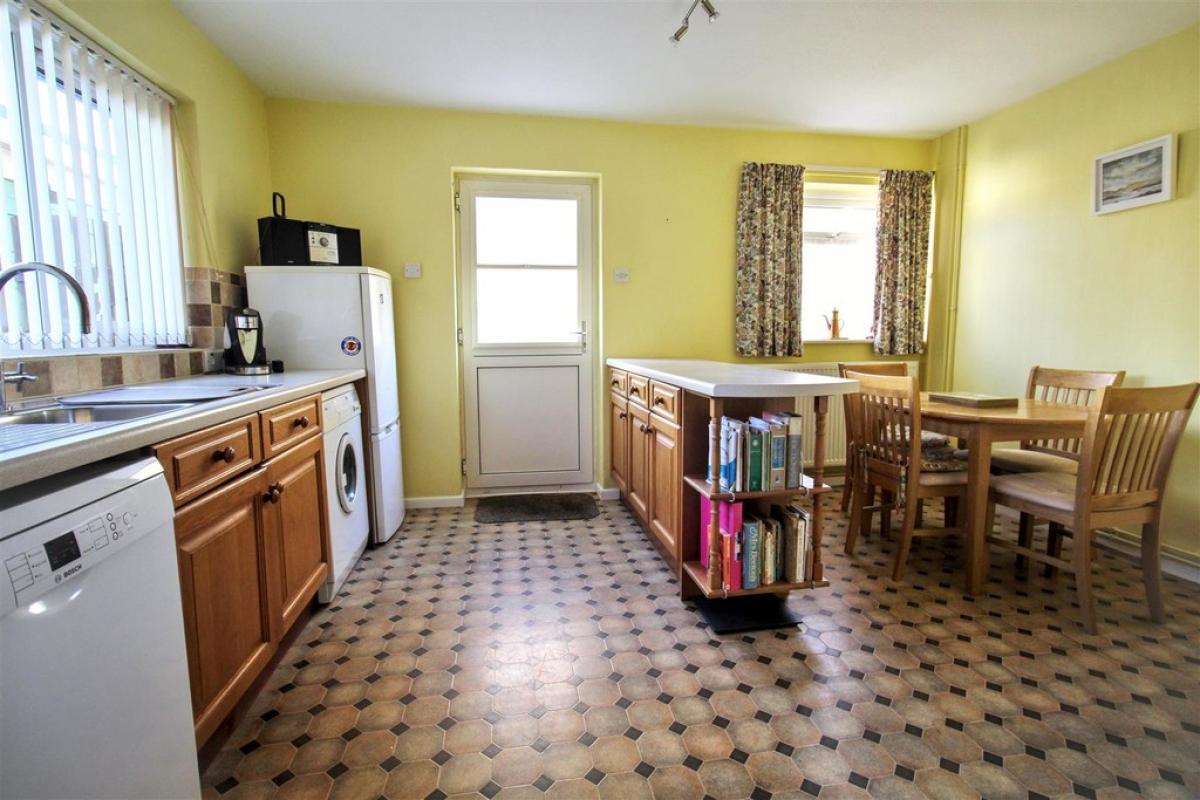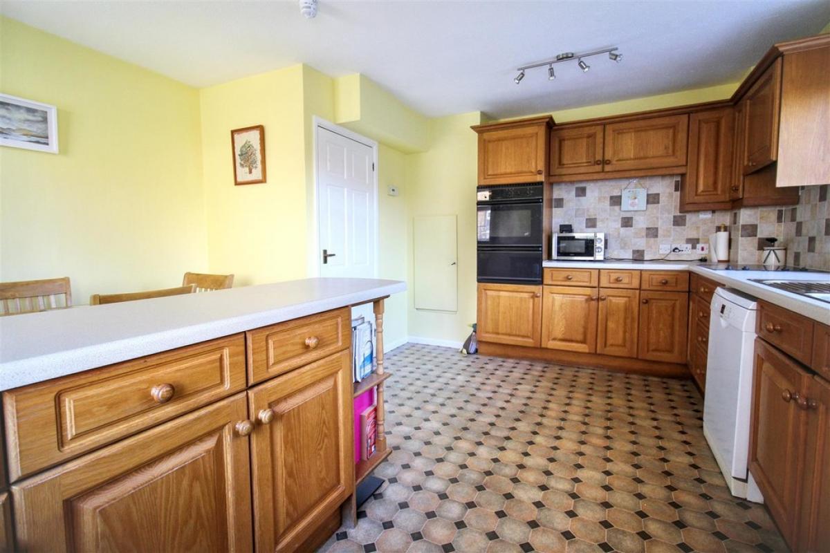 KITCHEN/BREAKFASTROOM Double glazed window to rear and side aspect, uPVC door to side entrance, fitted with wooden fronted wall and base units with inset stainless steel one and a half sink and drainer, four ring electric hob with cooker hood over, fitted electric double oven, space and plumbing for washing machine and dishwasher, space for free standing fridge freezer, radiator, vinyl flooring.