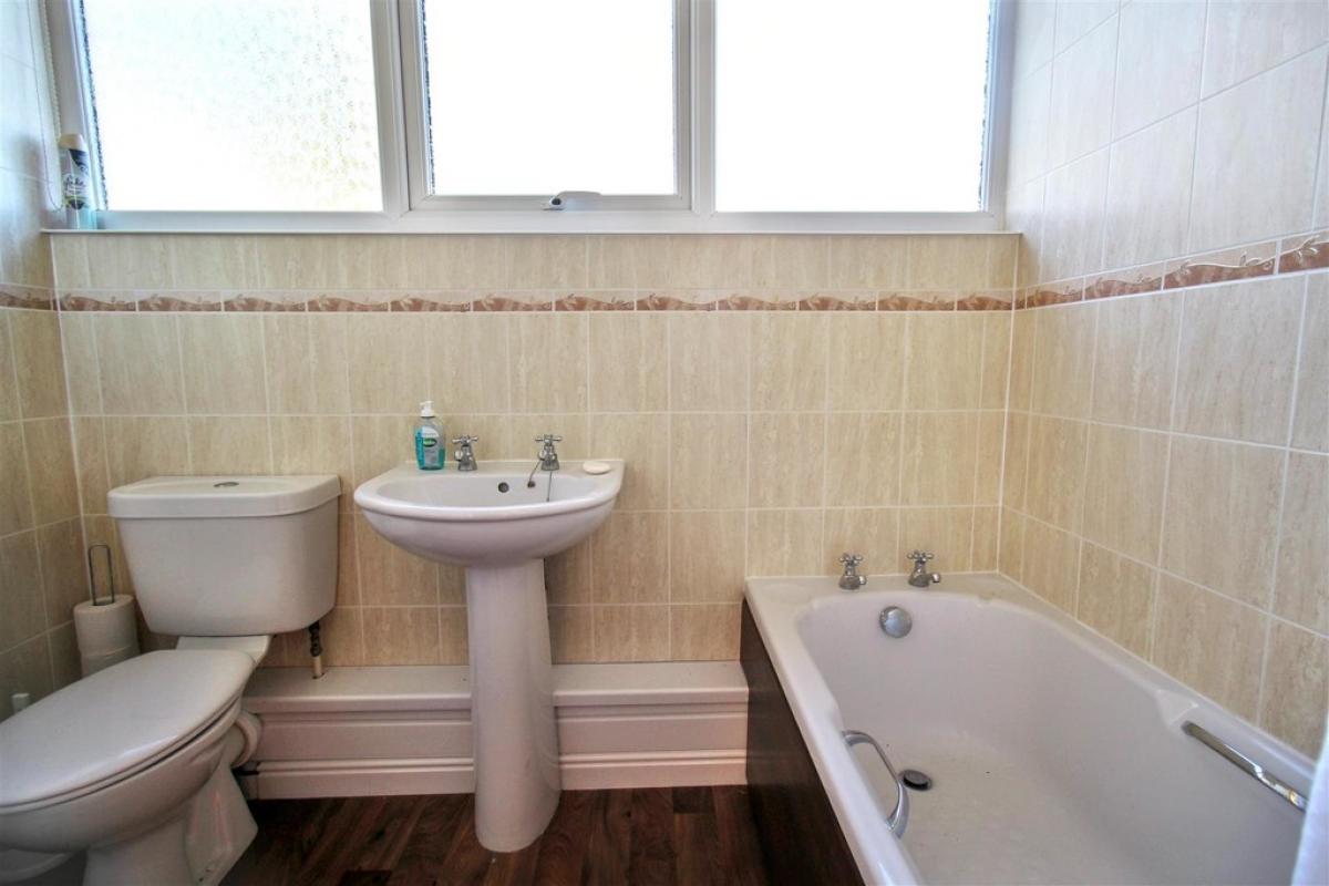 BATHROOM Double glazed window with obscured glass to rear aspect, fitted with a three piece suite comprising bath with electric Mira shower over, pedestal wash hand basin, WC, radiator, vinyl flooring, shaver charging point.
