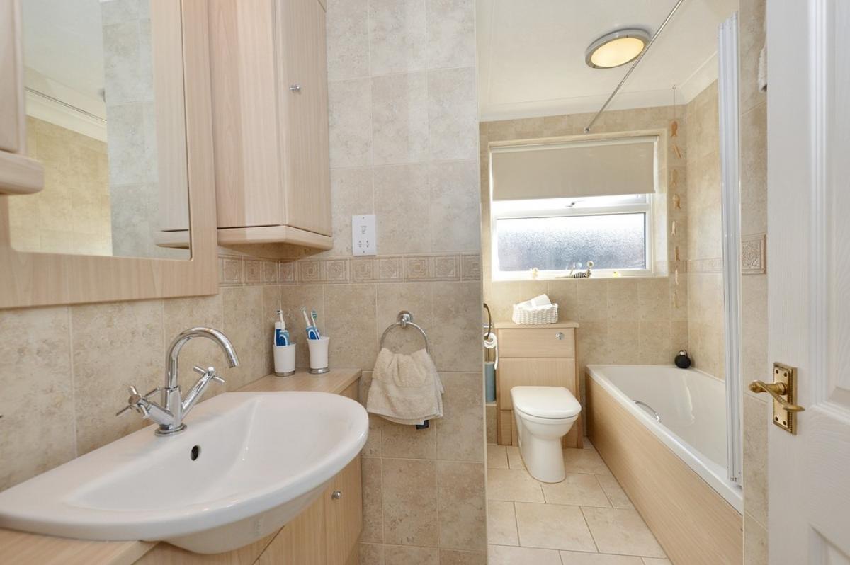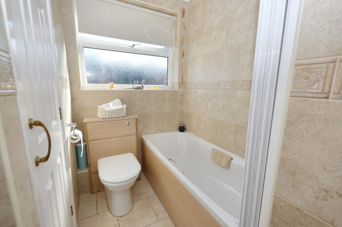 BATHROOM Window to side aspect, panelled bath with shower and screen above, concealed cistern w.c., vanity wash basin with cupboards and drawers beneath, further storage cupboards and mirror above, built in cupboard housing Worcester gas fired boiler providing central heating and domestic hot water. Chrome heated towel rail. Tiled walls and floor.