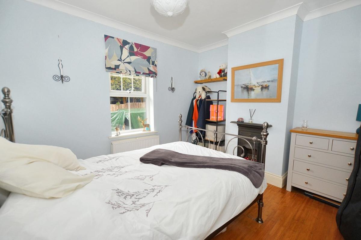BEDROOMTHREE UPVC double glazed window to side, radiator, solid wood flooring, ceiling light and rose, feature cast iron fireplace.