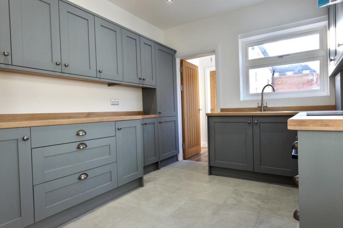 KITCHEN Newly fitted with a comprehensive range of base and wall cabinets with laminated work surfaces and matching upstands. Inset electric hob with contemporary filter above and oven beneath. Inset stainless steel sink unit, integrated dishwasher, washing machine, fridge and freezer. Concealed gas boiler providing central heating and domestic hot water. Window to rear aspect. Door to: