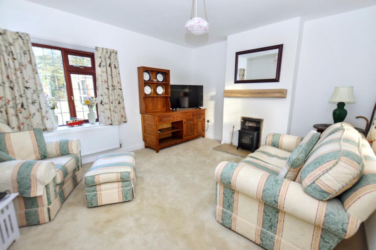 LOUNGE Two aspects to front and rear, provision for TV, central fireplace with solid hearth and timber mantel, two radiators.