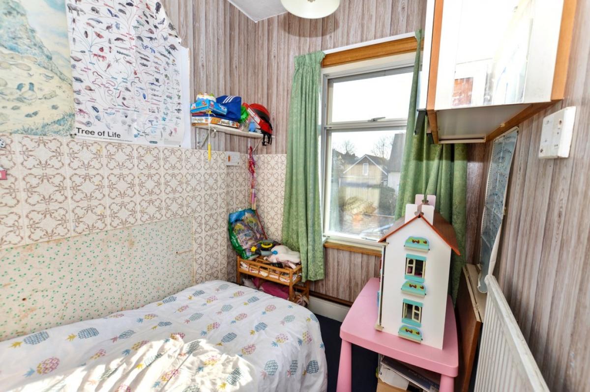BEDROOM3 Dormer window to front aspect with secondary glazing, radiator, fitted cupboard, period fireplace.