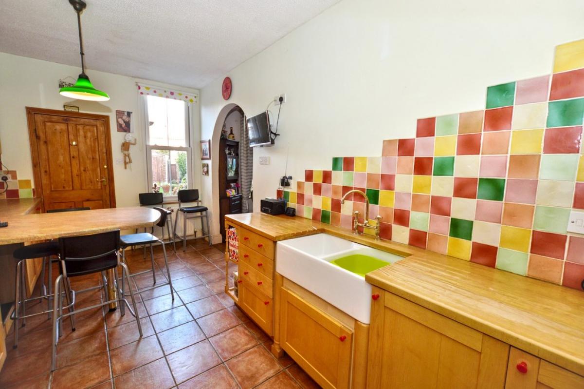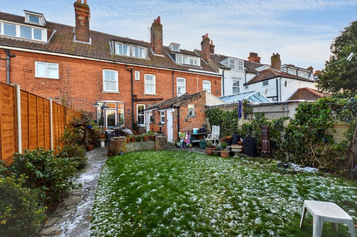 OUTSIDE To the front of the property is a small walled garden with path to front entrance door. The rear garden is fully enclosed and has a paved patio area leading to a lawn and established shrub beds. There is an attached brick outhouse and a large block built GARAGE and off-road parking space approached via the rear service road.