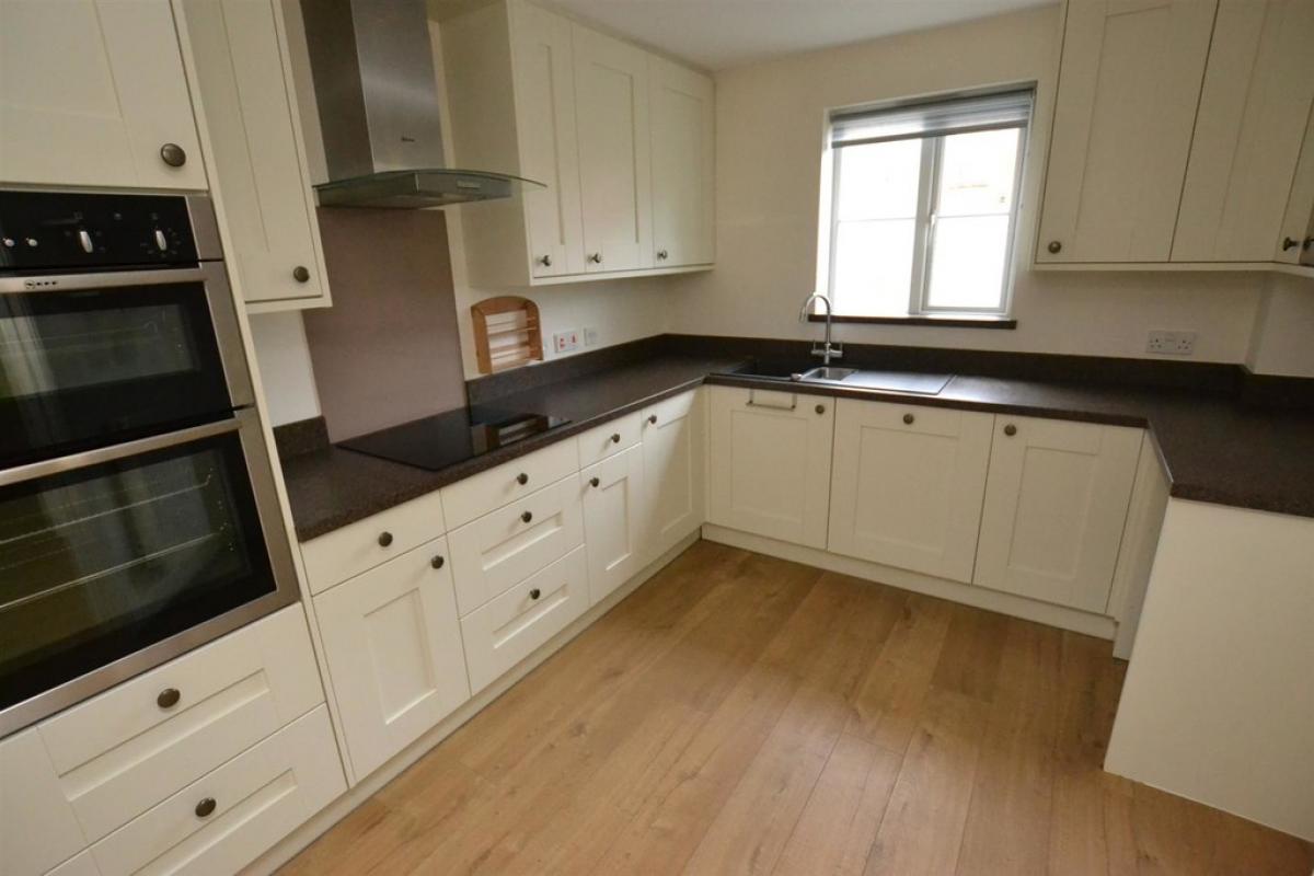 KITCHEN 9' 4" x 11' 10" (2.856m x 3.632m) Fitted kitchen, NEFF electric double oven, extractor fan and induction hob, Bosch dishwasher, space for washing machine and fridge/freezer, microwave, shelving unit and radiator.