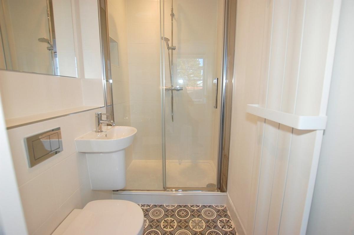 ENSUITESHOWERROOM6' 4" x 4' 6" (1.95m x 1.38m) WC, basin, shower cubicle, vinyl flooring, radiator.