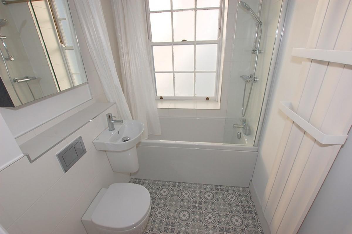 BATHROOM6' 3" x 5' 4" (1.93m x 1.65m) WC, basin, bath with shower over, vinyl floor, radiator.