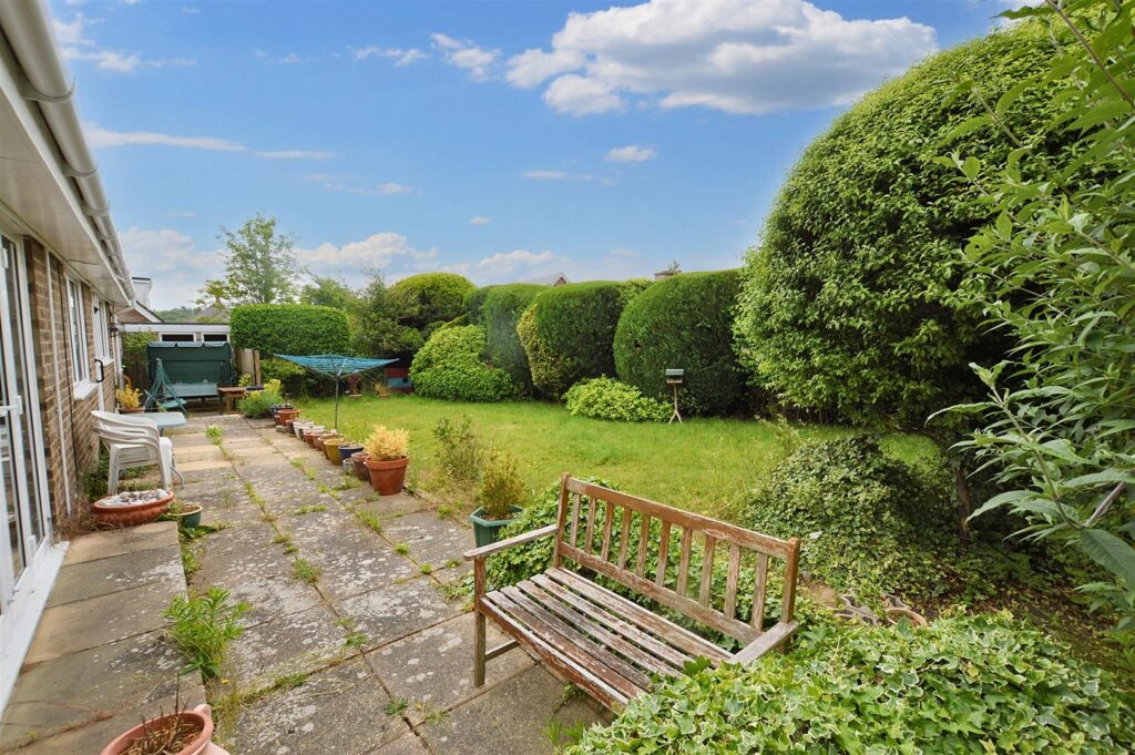 The property is approached over a brickweave driveway providing additional off-road parking. There are established shrub planting along the borders to the front, side and rear. There are lawned areas to the side which in turn leads to a further lawned garden at the rear enjoying a southerly aspect.