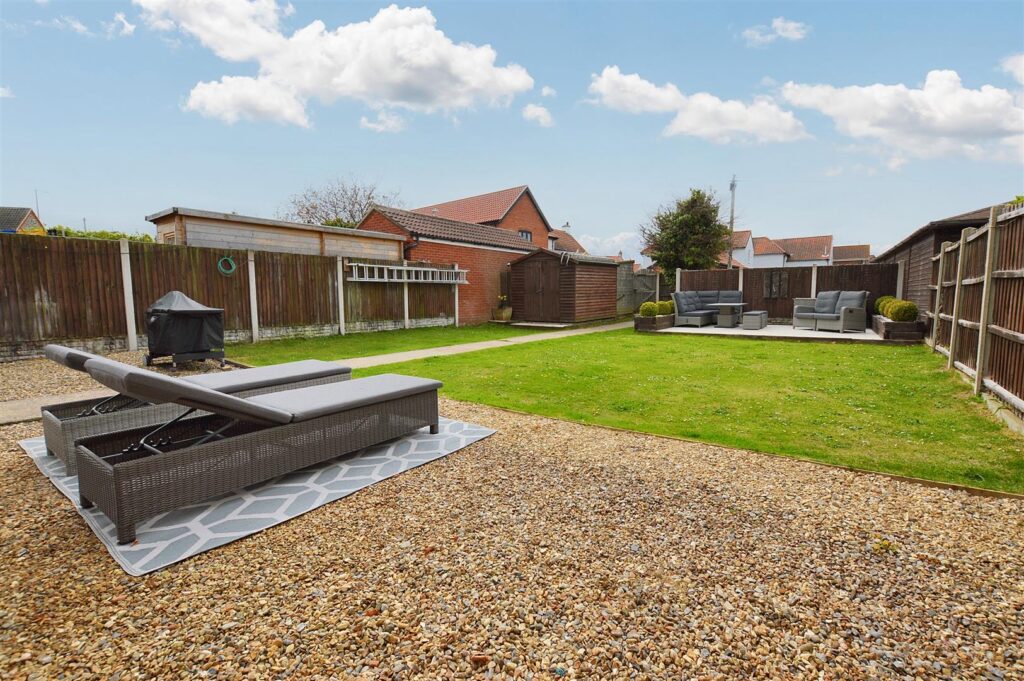 To the front of the property is a shingled area providing off-road parking and a lawned area to the side. A gated access then leads to the enclosed rear garden which is generous in size and is landscaped to provide a large shingled area immediately at the rear of the property which in turns leads to an extensive lawn and a raised decked area with planters and ample space for alfresco dining. There is a further vehicular access off Jubilee Drive leading to a timber WORKSHOP and further off-road parking.