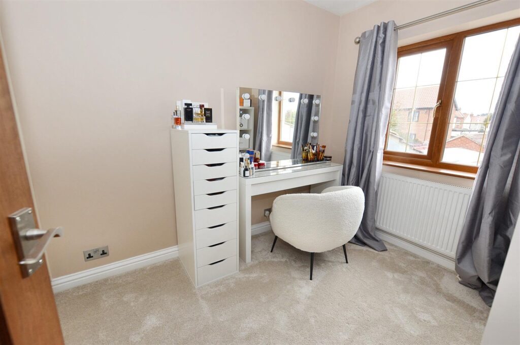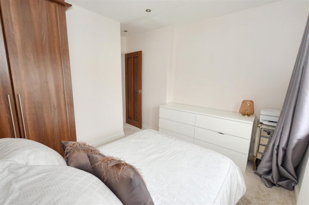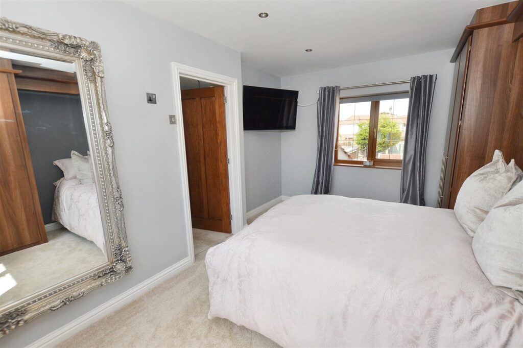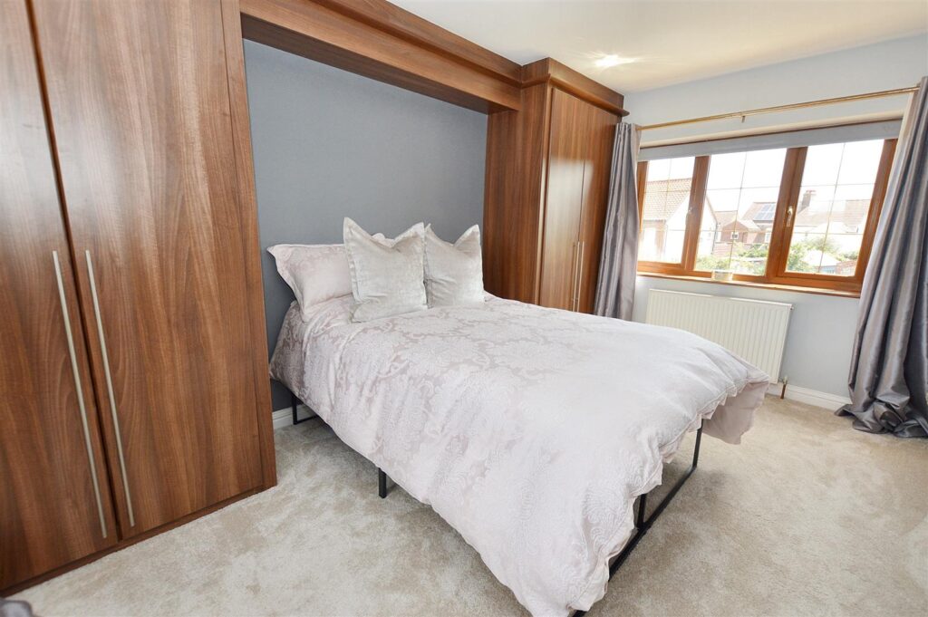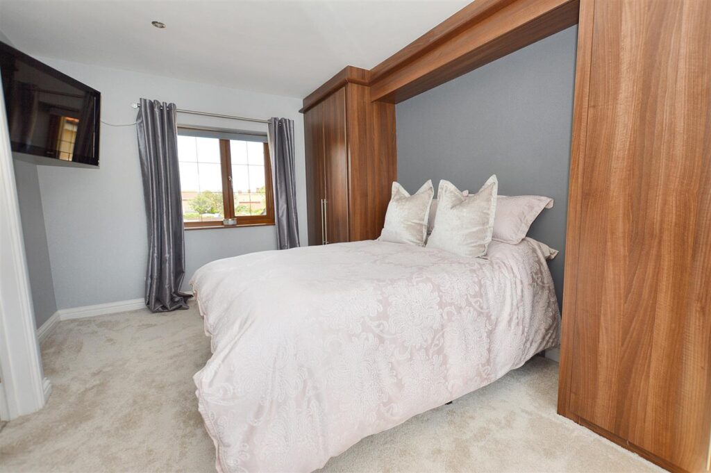 A beautifully light room with windows to front and rear, radiator, range of fitted bedroom furniture to include two double wardrobes and over head storage cupboards, provision for wall mounted TV.