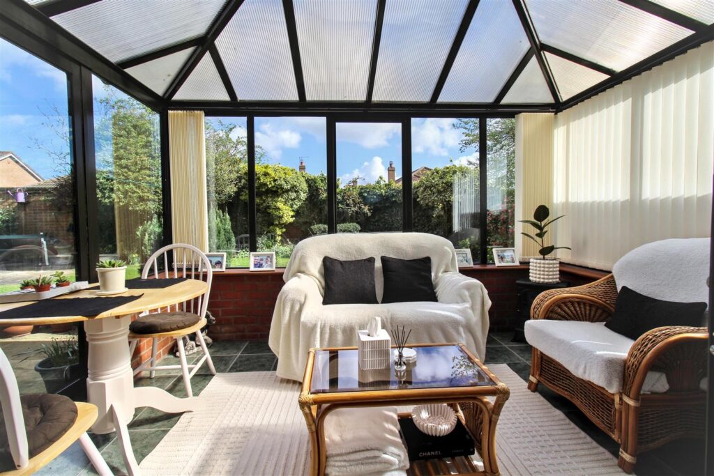 Double glazed sliding patio doors to conservatory, carpet, radiator.