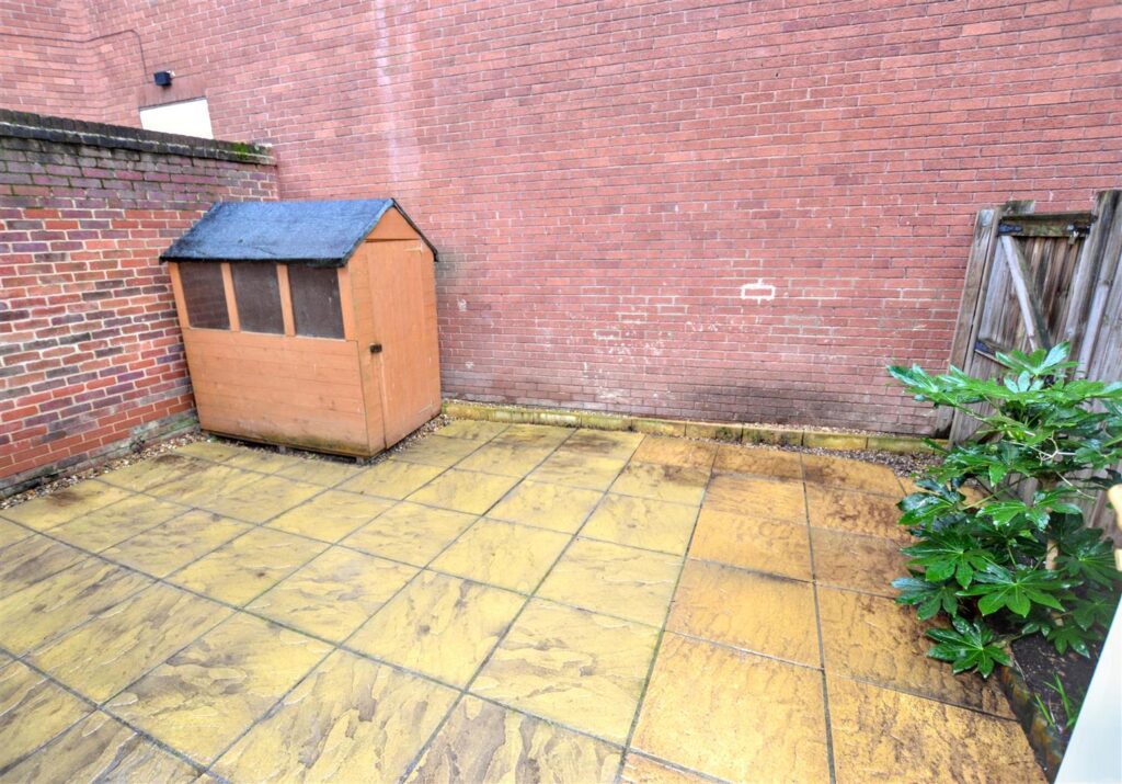 Private, low maintenance rear courtyard garden. Garden shed. Gate for pedestrian access.