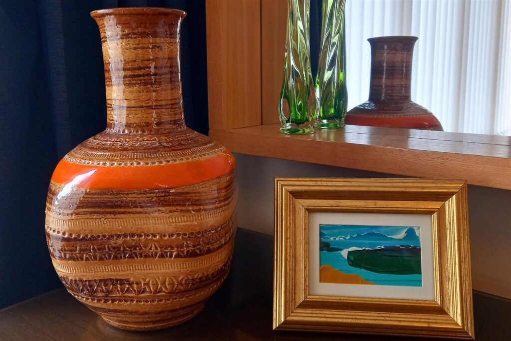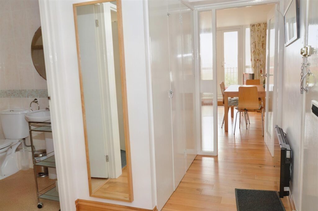 Wall mounted modern electric heater, wood flooring. Built in airing cupboard housing lagged cylinder with immersion heater. Further fitted store cupboard.