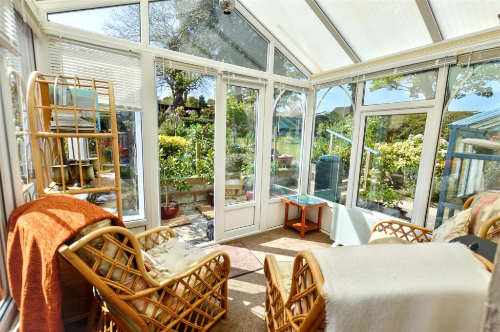 Of UPVC double glazed construction with windows to the side and French doors to the garden.