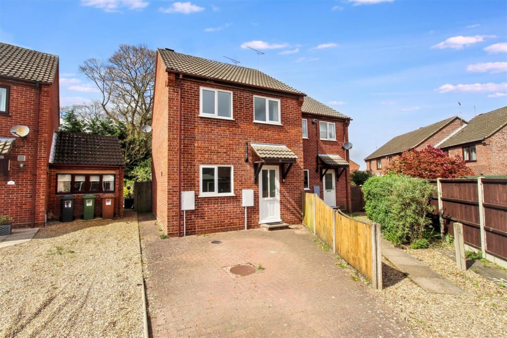 A modern semi detached 3 bedroom house situated at the end of a cul de sac only a short distance from the market place. The accommodation includes an entrance hall, cloakroom, fitted kitchen, lounge and conservatory. On the first floor are 3 bedrooms and a bathroom with over bath shower. The property benefits from gas central heating and UPVC double glazing. There is an en bloc garage with parking.