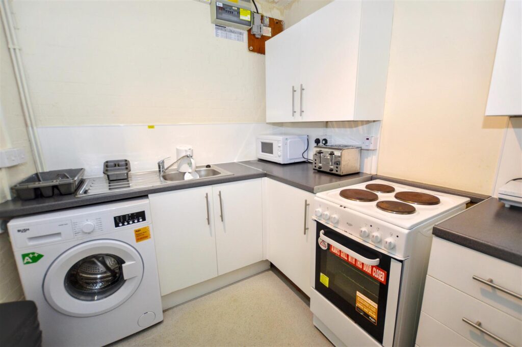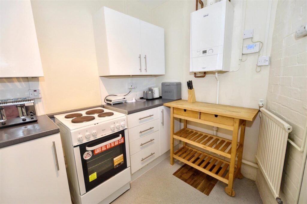 Range of base, wall and drawer units, provision for cooker and washing machine and wall mounted gas central heating boiler.
