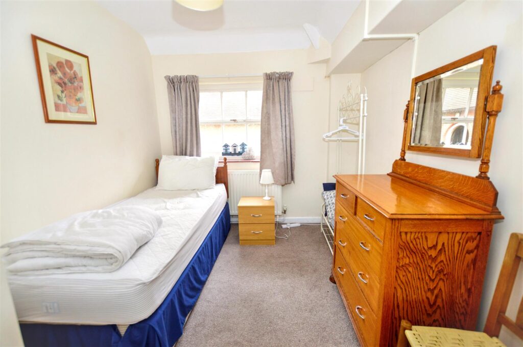 Window to the front, ceiling light, radiator door to rear courtyard. Internal door to bedroom one.