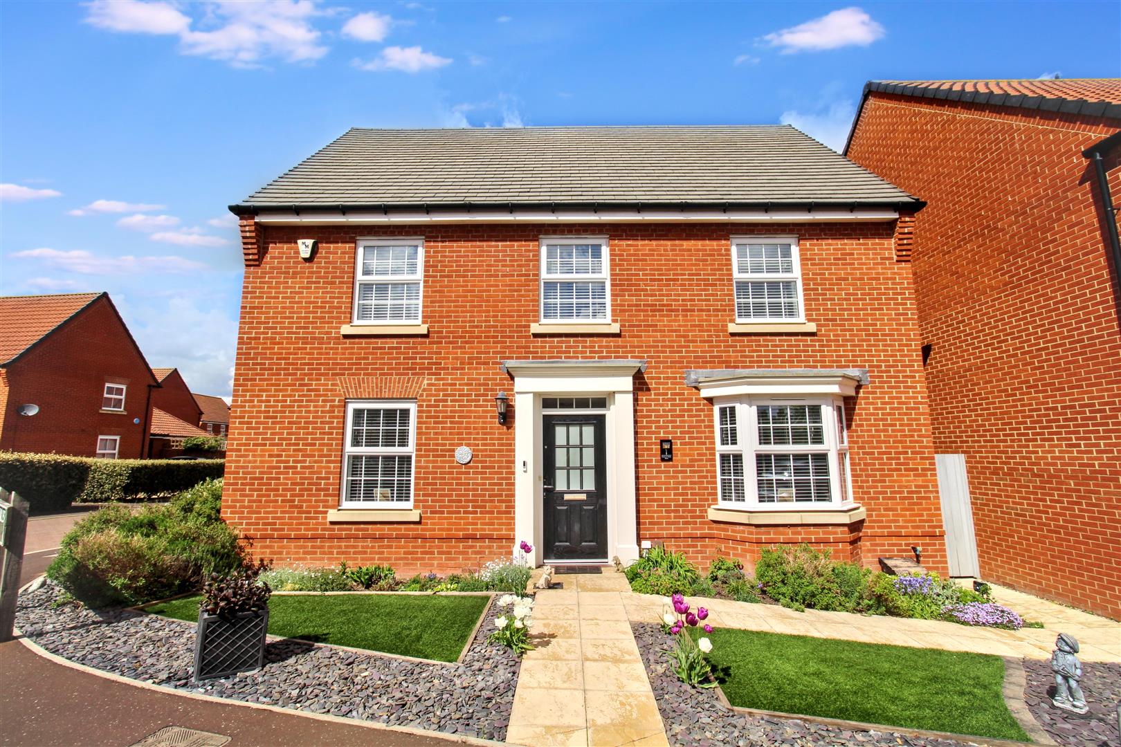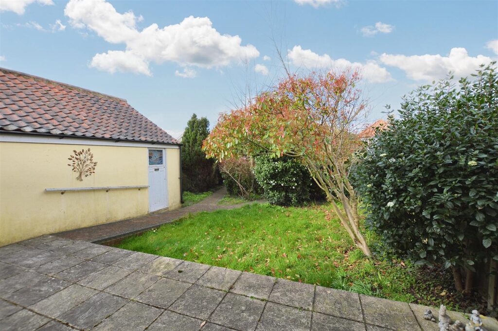 To the front of the property is a large brickweave area providing ample off-road parking and leading to the garage. There are established shrubs to the front also. A gate leads to the fully enclosed rear garden which has a paved patio immediately at the rear which leads to a lawned area and further established shrubs and trees.