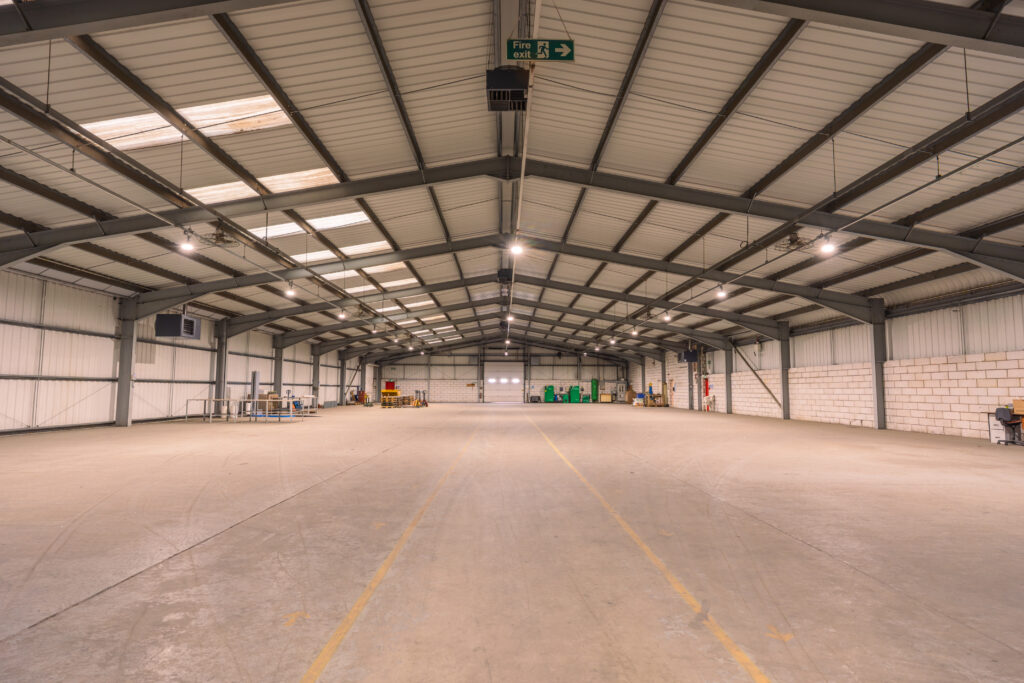 The property comprises a modern detached warehouse in three bays of steel frame construction under a pitched and insulated sheet steel roof with PVC roof lights. Loading access is to the east, including one tailgate loading bay. The warehouse benefits from a concrete floor and a minimum eaves height of 3.5m. Internally the central bay is divided with cold stores at the rear.