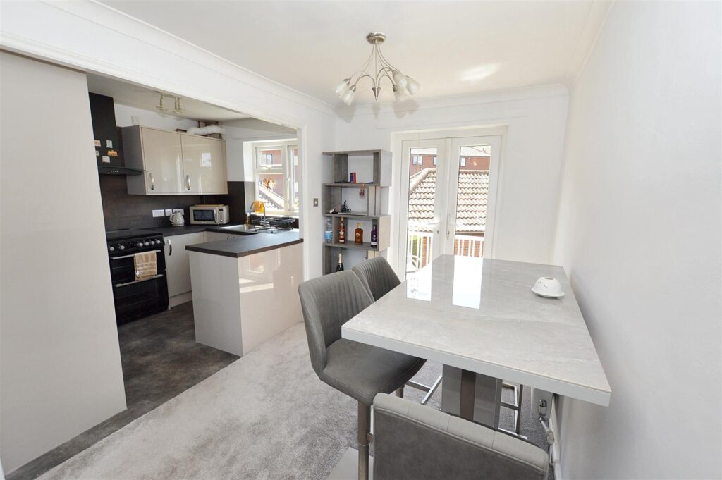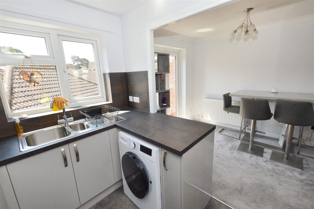 Recently re-fitted with a modern range of high gloss base and wall cabinets with laminated work surfaces and matching splashbacks. Inset sink unit with window to rear, point for gas cooker with filter hood above, integrated fridge and freezer, provision for washing machine.