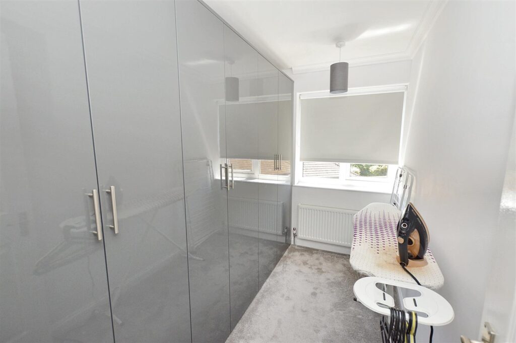 Window to front aspect, radiator. Range of full height wardrobe cupboards.