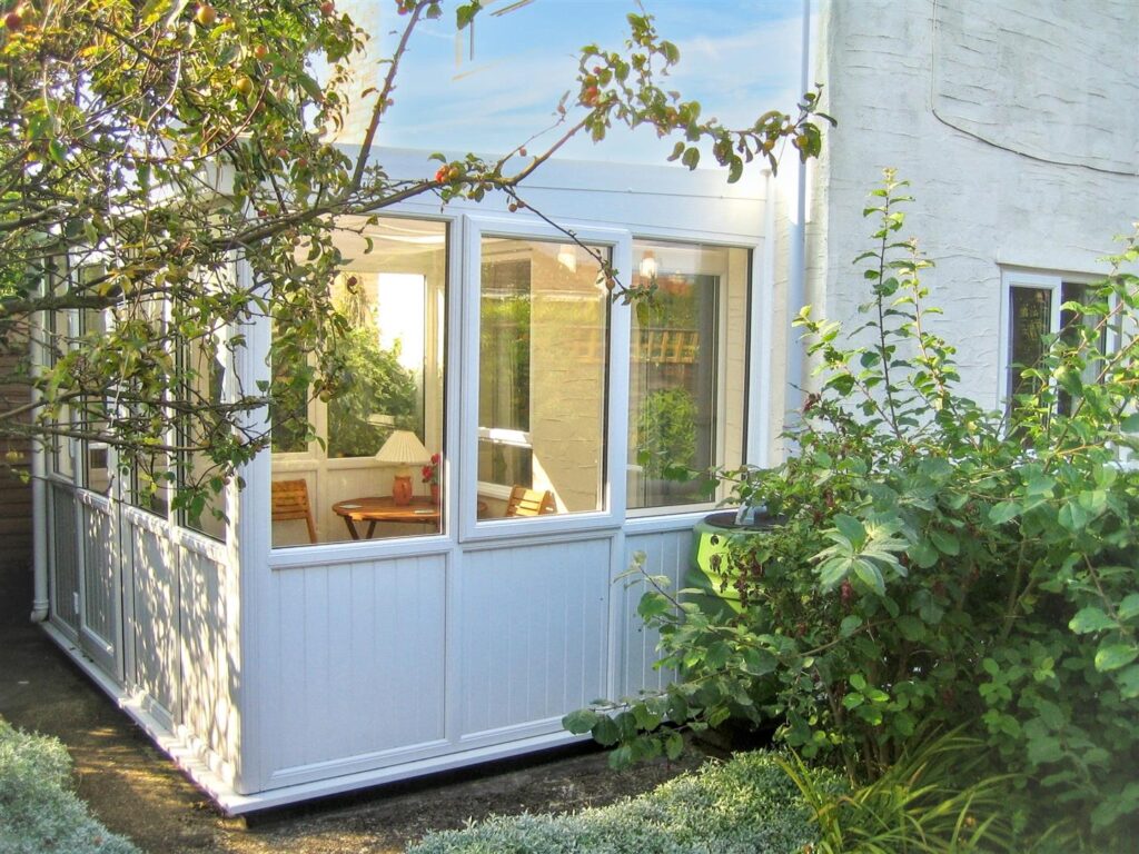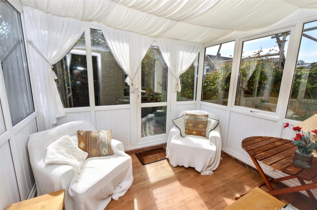 Of UPVC construction with translucent roof and blinds, glass panelled door to rear garden.