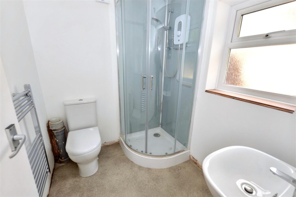 Recently re-fitted with corner shower enclosure with electric shower, close coupled w.c., pedestal wash basin, heated towel rail, wall mounted fan heater.