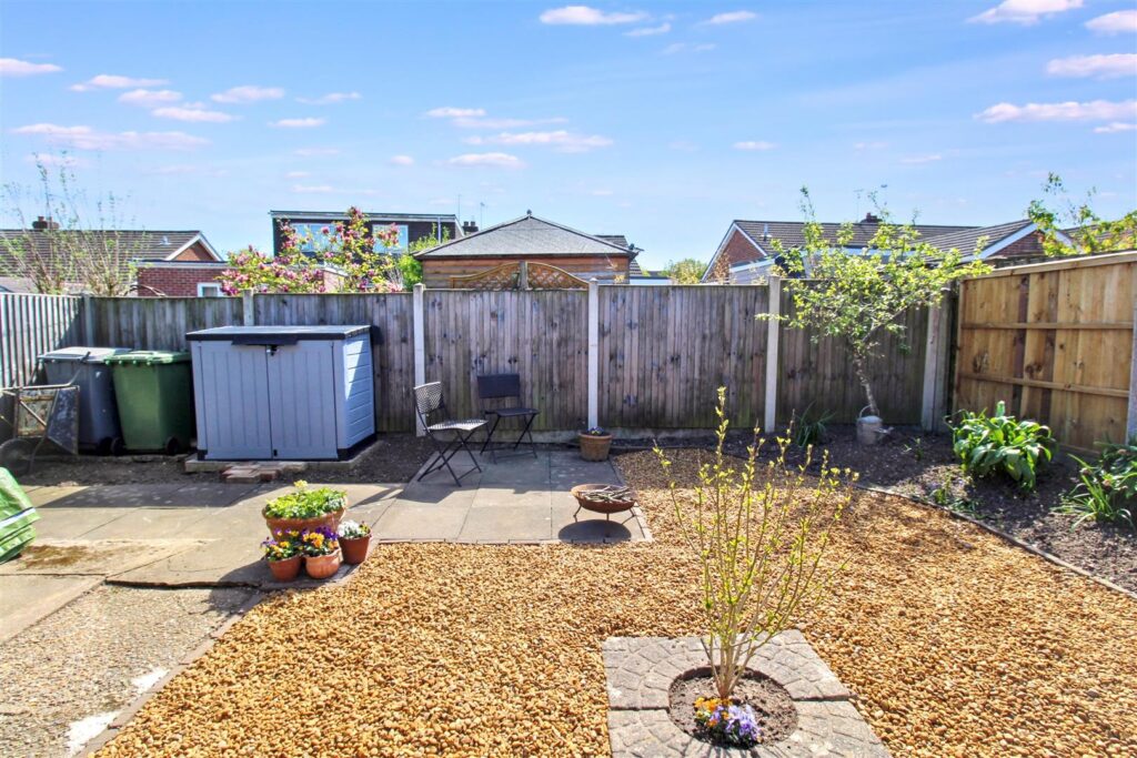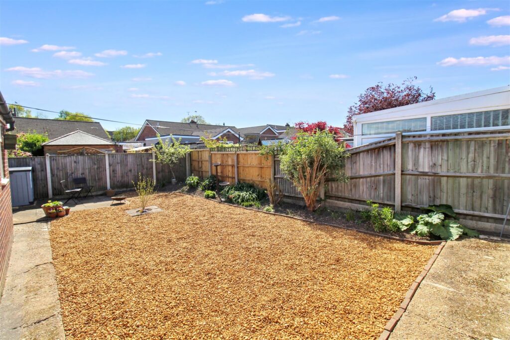 To the front of the property is a shingle double width driveway with a border of mature shrubs to the front, a picket fence lines the driveway with a low lying gate providing space to further parking and access to the single garage with power and light. The rear garden is also laid to shingle with a border of mature shrubs and a paved patio seating area, shed, outside tap and power point.