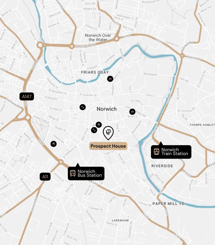 Situated adjacent to the Castle Quarter retail & leisure complex, with views of the Castle and Cathedral, Prospect House provides modern, amenity-rich office space including an onsite employee restaurant in the heart of Norwich.