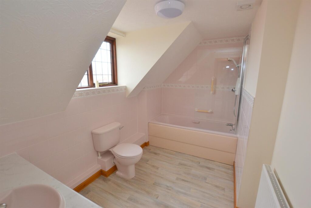 Bath with shower over, wash basin and WC. Radiator and extractor.