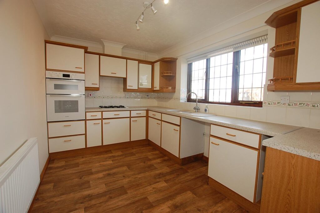 Good range of base and wall units with ample worktops. Inset hob, double oven, radiator and vinyl flooring.