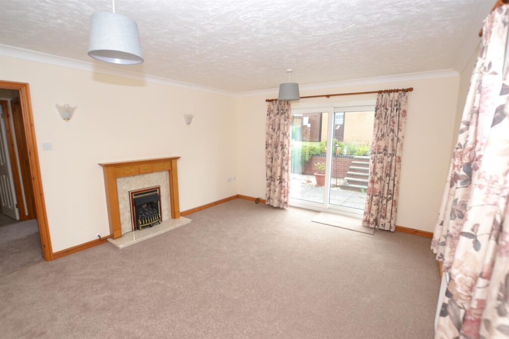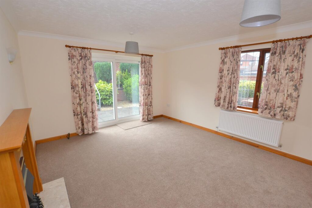Fitted carpet, fireplace, radiator and patio doors to the rear garden.