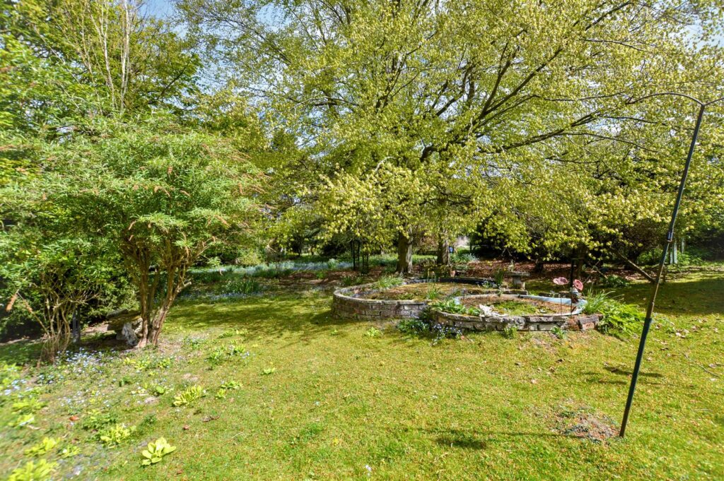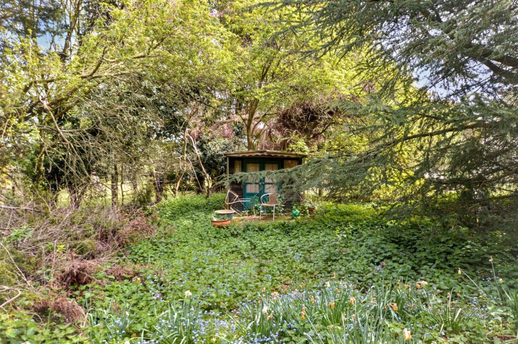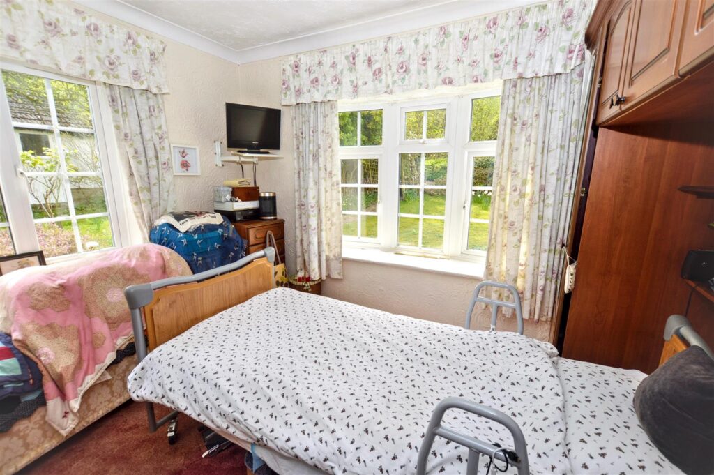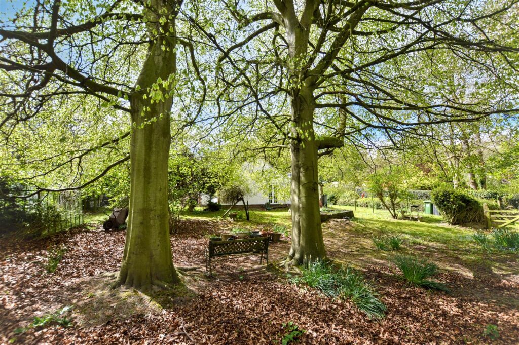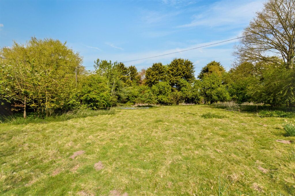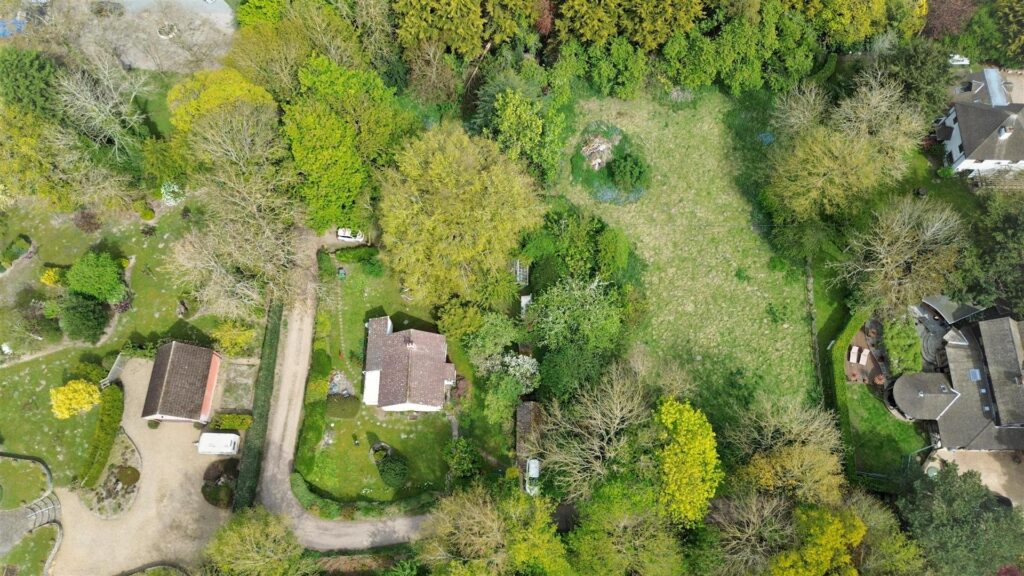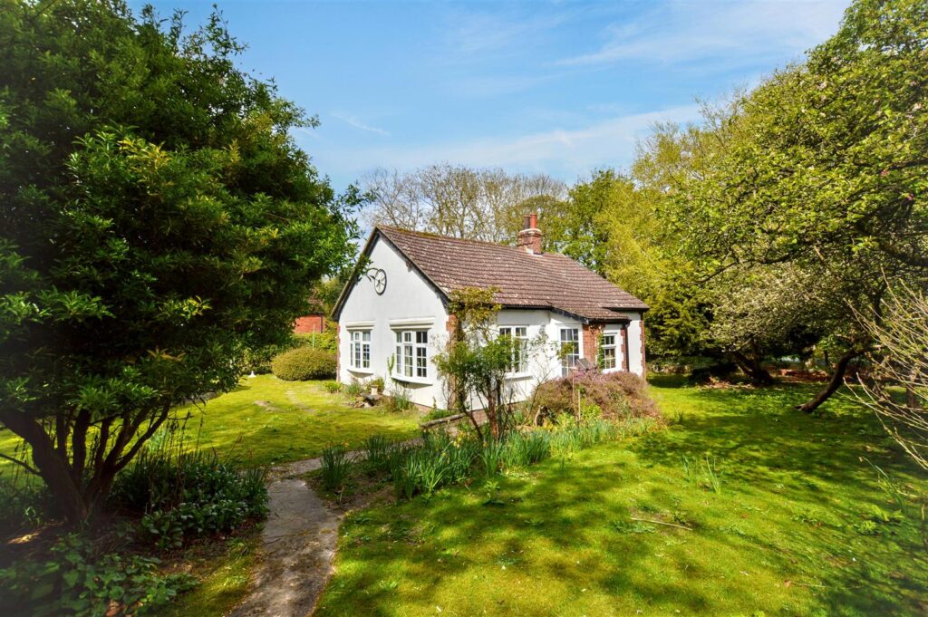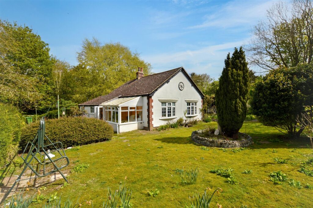 The property enjoys a tucked away setting, surrounded by formal gardens with a few outbuildings within the grounds which then extend to a former paddock with its own vehicular entrance. The bungalow would benefit from some updating but offers potential to create a lovely home in extensive grounds.