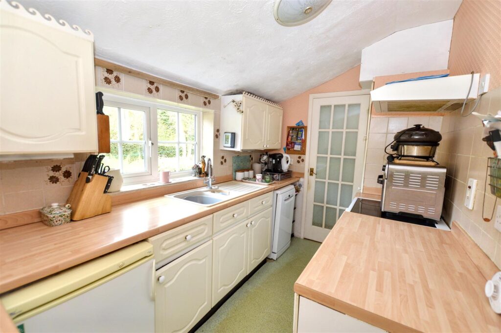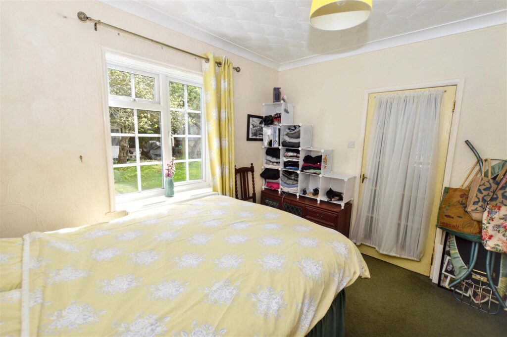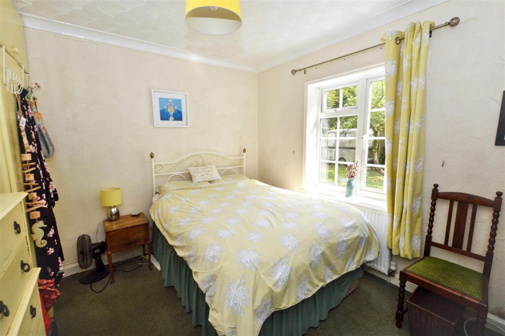 To the front of the property is a detached GARAGE with an off-road parking space, however there is another vehicular access to the grounds at the rear of the bungalow. Small range of OUTBUILDINGS.