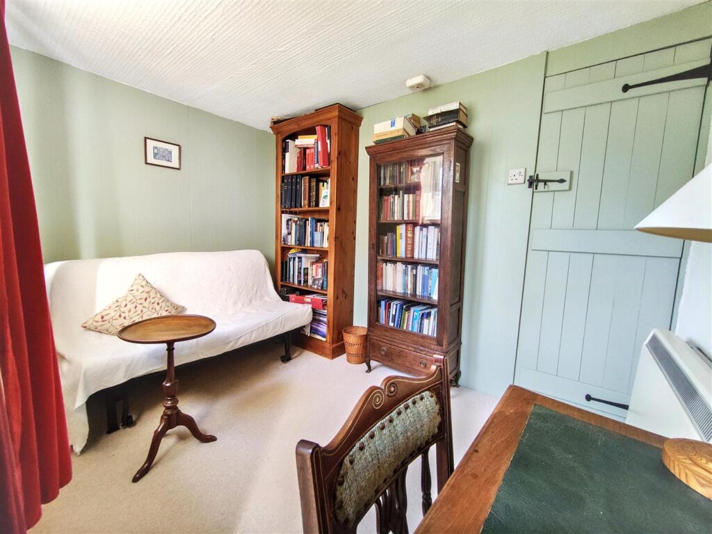 To the front the property is approached through a wrought iron gate, providing parking for multiple vehicles and access to the timber garage. The rear garden is South facing and comprises a mature lawn area, variety of mature shrubs and fruit trees, a greenhouse, shed and original privy.