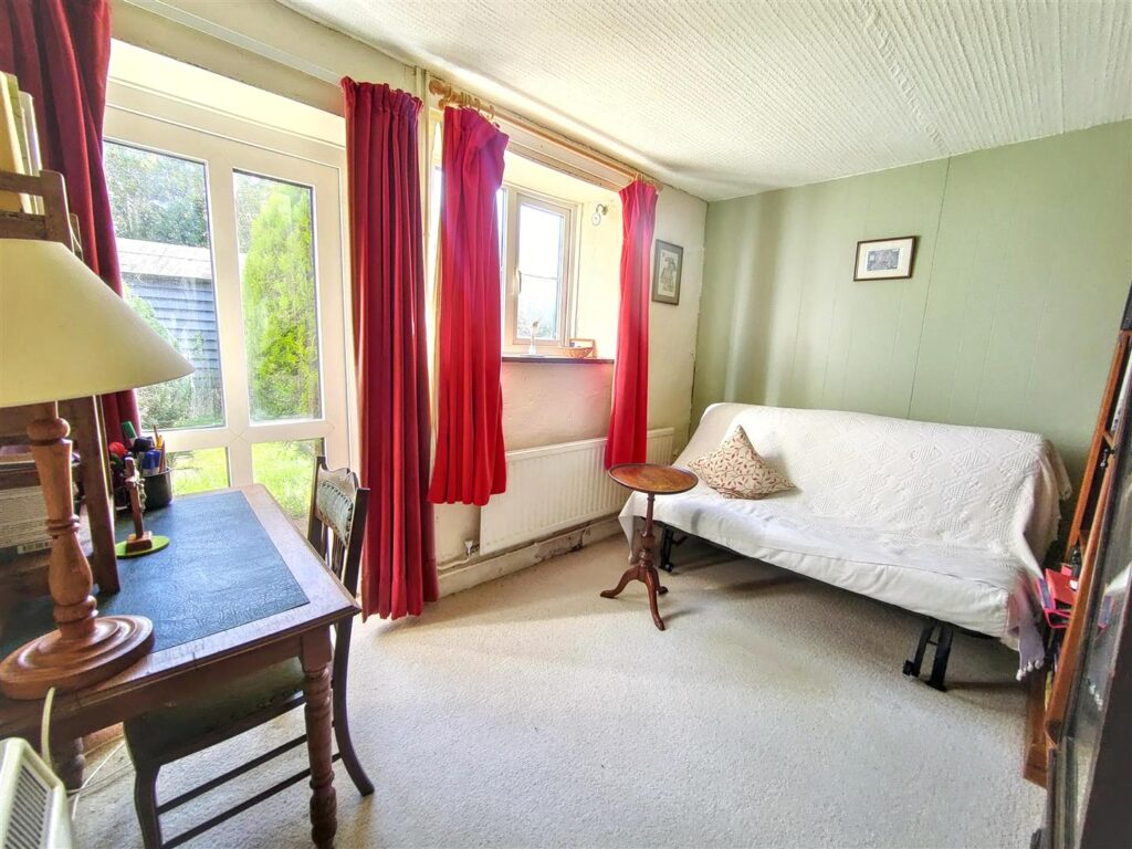 Double glazed door and window to side aspect, carpet, electric storage heater.