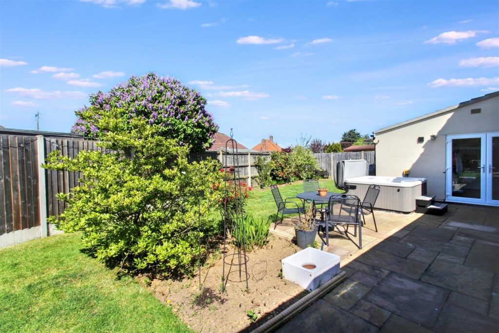 To the front the property features a large driveway laid to shingle with access to the double garage, which is insulated with power, lighting and electric up and over doors. The rear garden is enclosed with a shed, a patio patio seating area, lawned area and a border of mature shrubs.