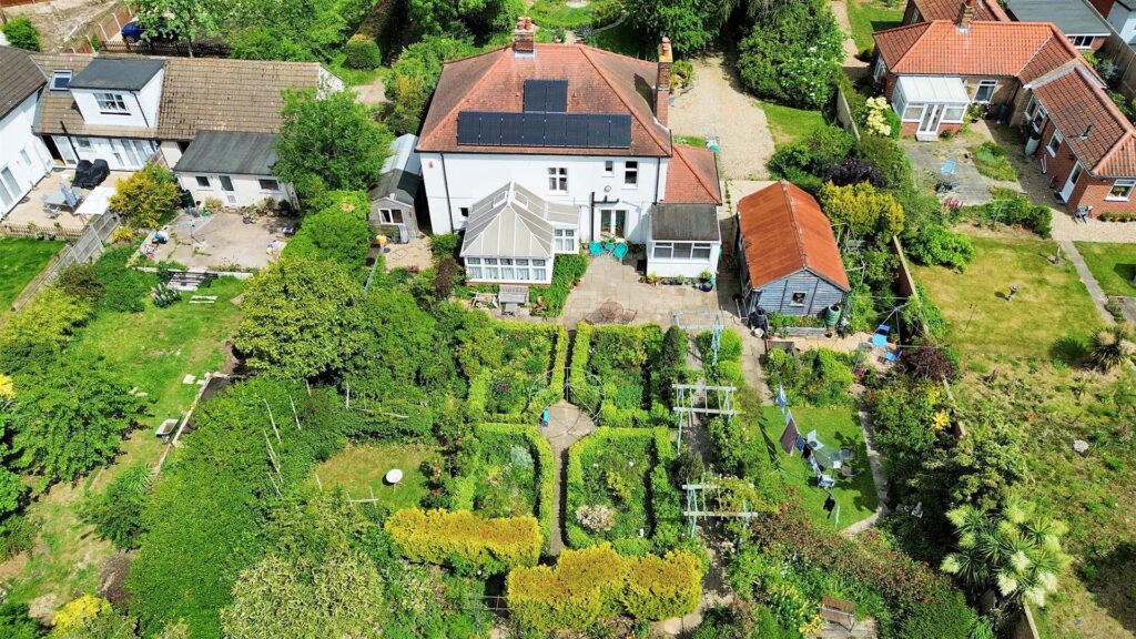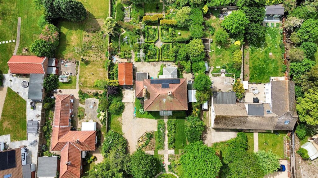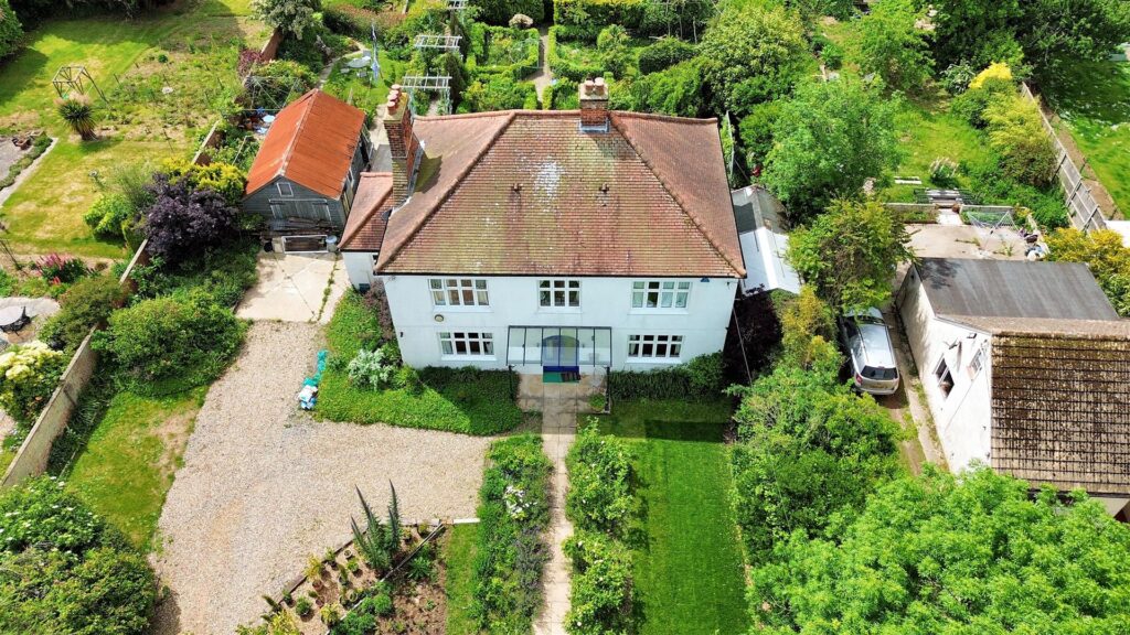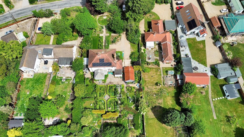 The property stands in a plot approaching 2/3 acre subject to survey. A driveway leads from the road and provides off-road parking for a number of vehicles and leads to the original 1920s timber GARAGE. To the front of the property is an established garden area with central pathway leading to a number of shrub and flower beds. A side access then leads to the extensive rear garden which has been carefully designed and maintained to attract birds and wildlife. There is a patio immediately at the rear and a series of pathways then meandering through the garden where there are various lawned areas, box hedging, numerous shrubs and trees and pergolas making it a delightful space which may only be appreciated by a viewing. There are a number of outbuildings within the grounds which back on to open farmland at the rear.